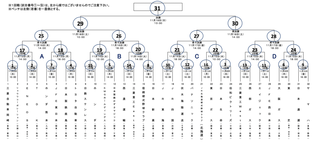 社会人野球日本選手権2025組み合わせは以下の画像の通りです。